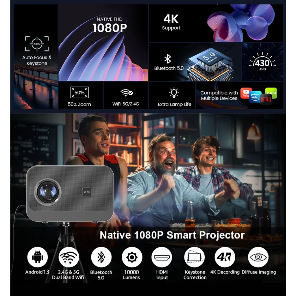 🌞Support Auto focus, can achieve more precision and stability, and it will not lose focus when watching movies for a long time.