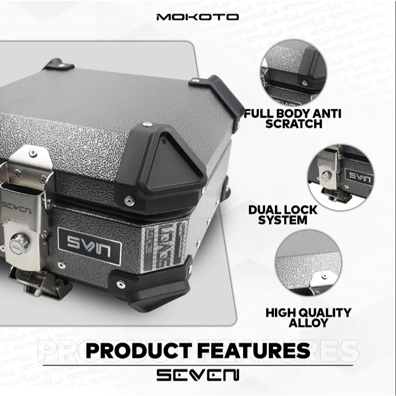 PRODUCT : MOKOTO SEVEN SERIES 15L ALLUMINUM ALLOY ANTI SCRATCH TOP BOX SVN-11470 REAR TAIL BOX COMPARTMENT