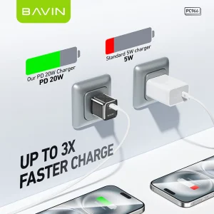USB-C BAVIN PC966 PD 20W Mini Fast Charger Adapter w/ Intelligent Micro Chip Supports iPh 16 Series