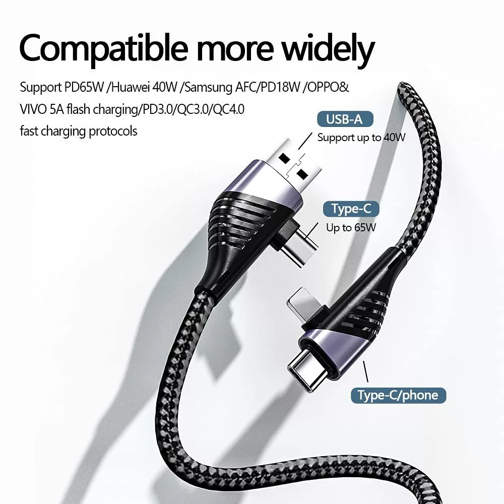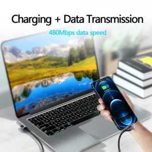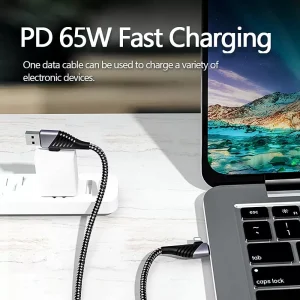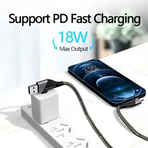 Reinforced cable for fast charging and data transfer.